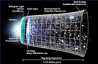 Ceva de marimea unei particule subatomice s-a dilatat la dimensiuni inimaginabil de mari, intr-o fractiune de secunda. Oamenii de stiinta numesc aceasta teorie a originii Universului Big Bang.