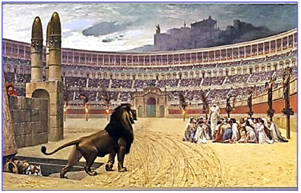 Creștinii, mărturisitori ai lui Hristos, era aduși pe arene spre a fi devorați de animale.