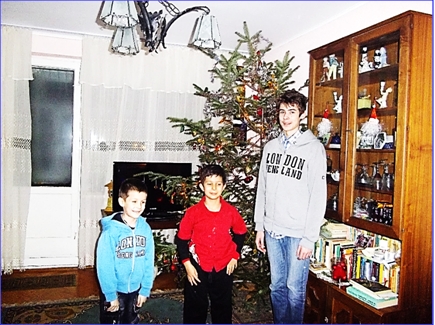 De Crăciun, au venit cei trei nepoți (Luca, Toma și Sabin) cu uratul la bunici |