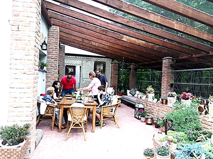 În fața casei lor, fratele Nicușor și hărnicuța cumnată Mia