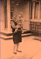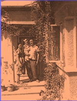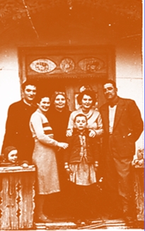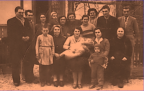 Mămica Sanda (cu pulovăr cu dungi), fratele Ion Iordache (lângă mămica), cumnata Jana (cu bebelușa Mariana în brațe), tanti Măndița Saris (pe scaun lângă Jana), nenea Fanachi Saris (primul de la stânga, în picioare) și fratele Nicușor (cu sortul de elev)