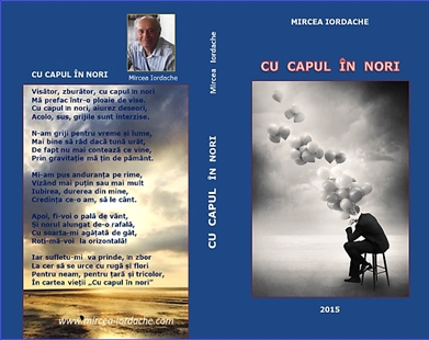 - Ca o autoapreciere a interesului, față de acest sistem al meu de comunicare, am luat un titlu simbolic, mai mult din considerentul de a vă incita să vedeți cum îmi stă cu capul în nori, ce fluturi îmi zboară din țeastă, deci titlul este <Cu capul în nori>, pentru care i-am prins pe copertă un om din al cărui cap sunt înălțate baloane, care, în cazul meu se vor baloane cu idei poetice, care se înalță dincolo de <nori> și nu baloane de săpun care se sparg la prima adiere de vânt, dar chiar și baloanele de spumă au clipa lor de trăire în eternitatea vremurilor, mai ales atunci când reprezintă semințe ale viitorului”.